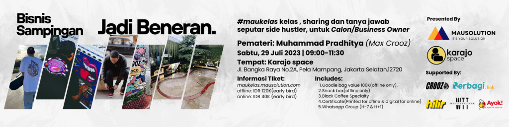 #maukelas adalah sebuah platform yang menyelenggarakan berbagai acara offline dan online dengan tujuan memberikan dampak yang positif bagi para entrepreneur. Kami percaya bahwa pendidikan dan kolaborasi adalah kunci keberhasilan dalam dunia bisnis, dan kami berkomitmen untuk menyediakan pengalaman belajar yang berharga dan inspiratif kepada para peserta kami.
